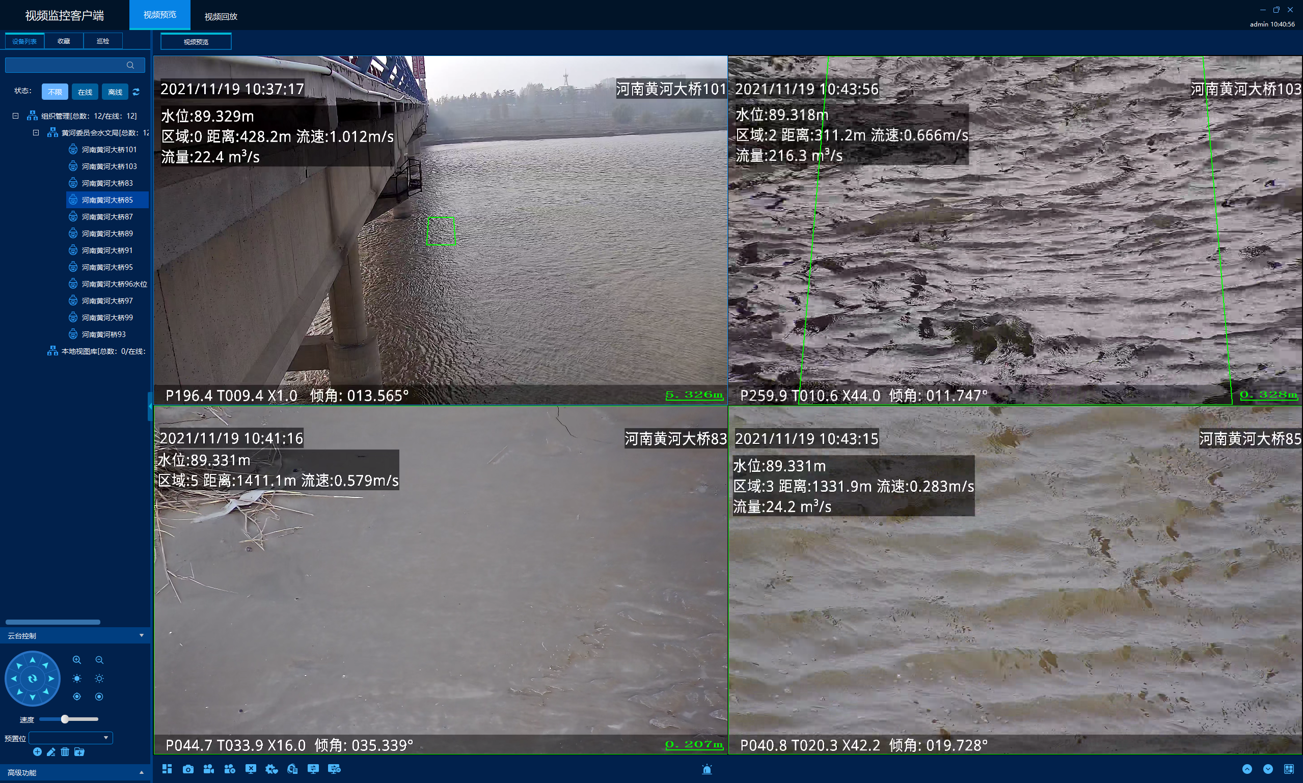 天地伟业自主研发AI视频测流技术,暨影像法测流系统,以花园口水文站作为试点,结合花园口水文站断面较宽、游荡性河道的特征,在黄河大桥范围内安装了流速监测球机用来监测河道断面流速、虚拟水位球机用来监测水位变化情况,通过算法分析,可实现最高4000m³/s的流量在线监测。同时,必赢最新网页登录联合黄河水利委员会河南水文水资源局,共同申报水利部2022年水利先进使用技术重点推广指导目录,现已成功入围。